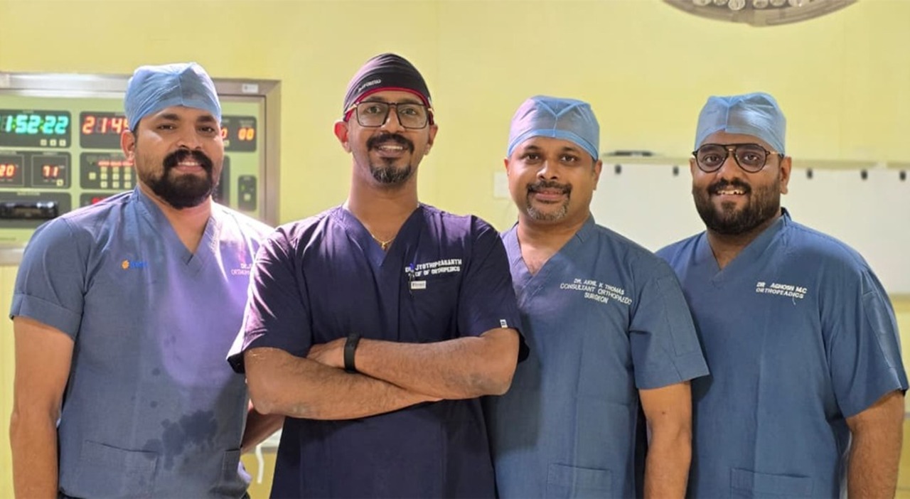 The landmark procedure was carried out by Dr. Jyothiprasanth and the orthopaedic team, bringing world-class knee ligament reconstruction techniques closer to patients in North Kerala.