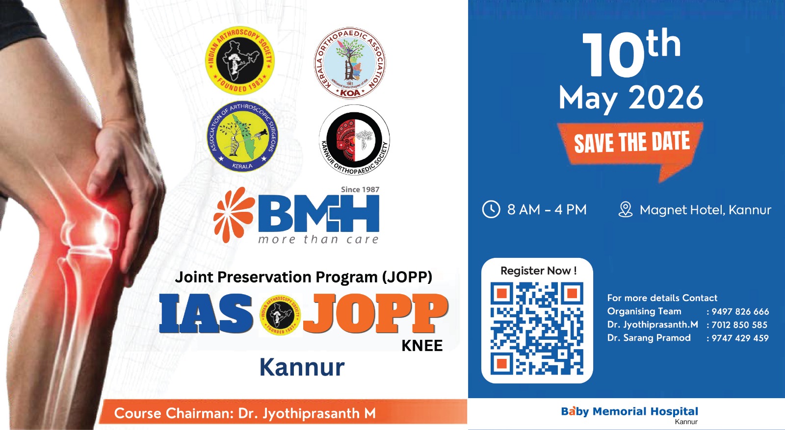 Baby Memorial Hospital, Kannur presents " IAS JOPP - Save The Knee 2026 " - Latest Developments in Knee Preservation!